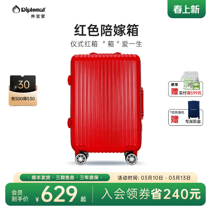 diplomat外交官红色行李箱结婚陪嫁箱拉杆箱万向轮新娘皮箱红箱子