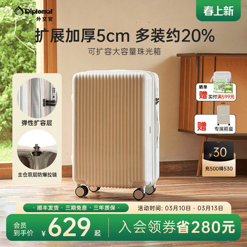 diplomat外交官珠光行李箱密码箱拉杆箱大容量旅行箱女2026新款