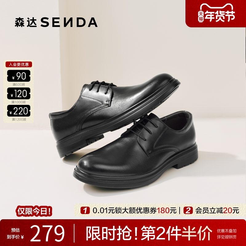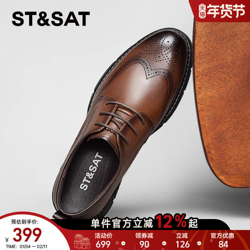森达男鞋正装皮鞋布洛克雕花商务通勤德比鞋商场同款真皮增高婚鞋