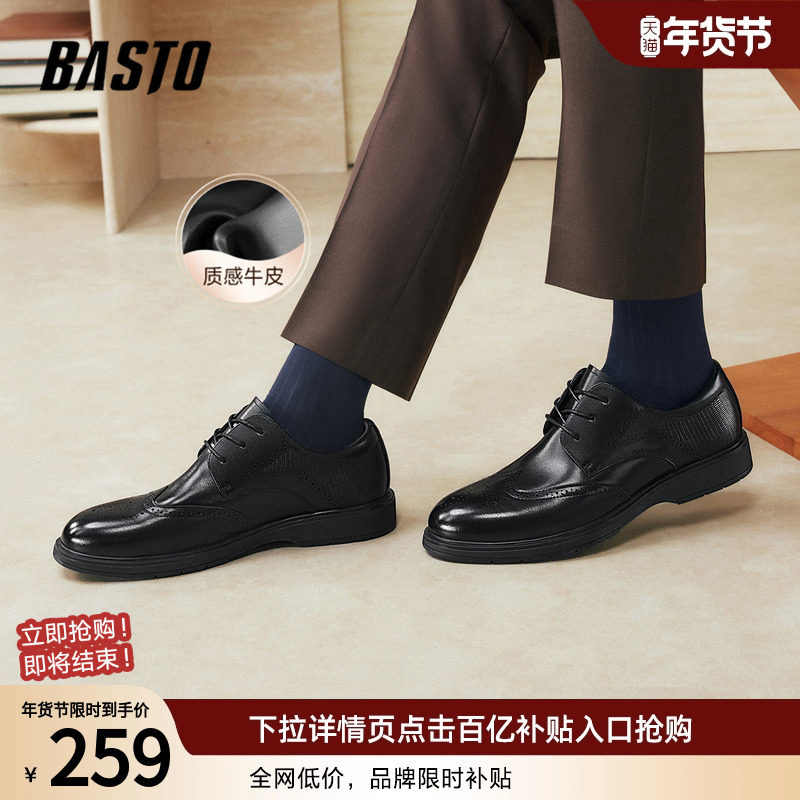 百丽男鞋布洛克皮鞋男士内增高真皮商务正装雕花新郎婚鞋A0523CM1