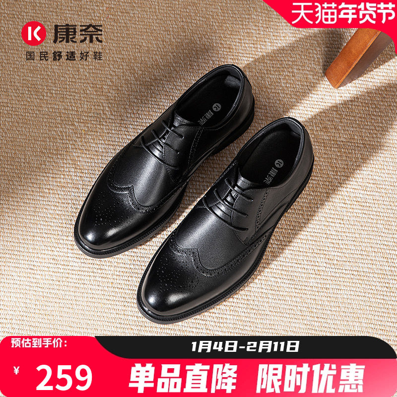 康奈男鞋2025秋季新款商务正装皮鞋男真皮系带宴会结婚男布洛克鞋