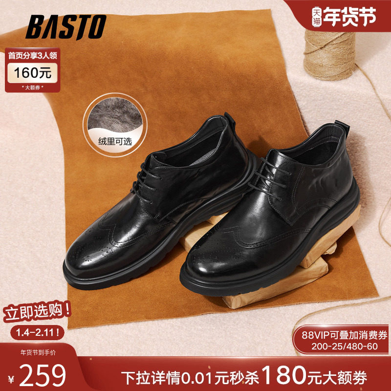 百思图25冬商场新款加绒保暖布洛克真皮休闲皮鞋商务男鞋50545DM5