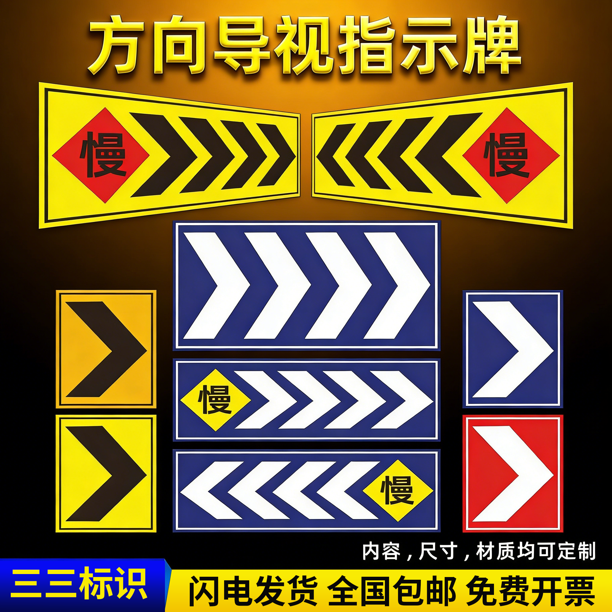 方向导视箭头交通指示牌地下车库停车场交通路标向左右慢行警示牌