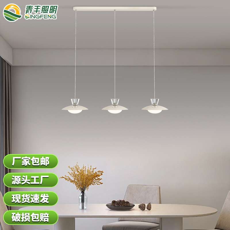 餐厅吊灯三头现代简约长条创意餐桌饭厅厨房水晶家用LED餐吊灯具