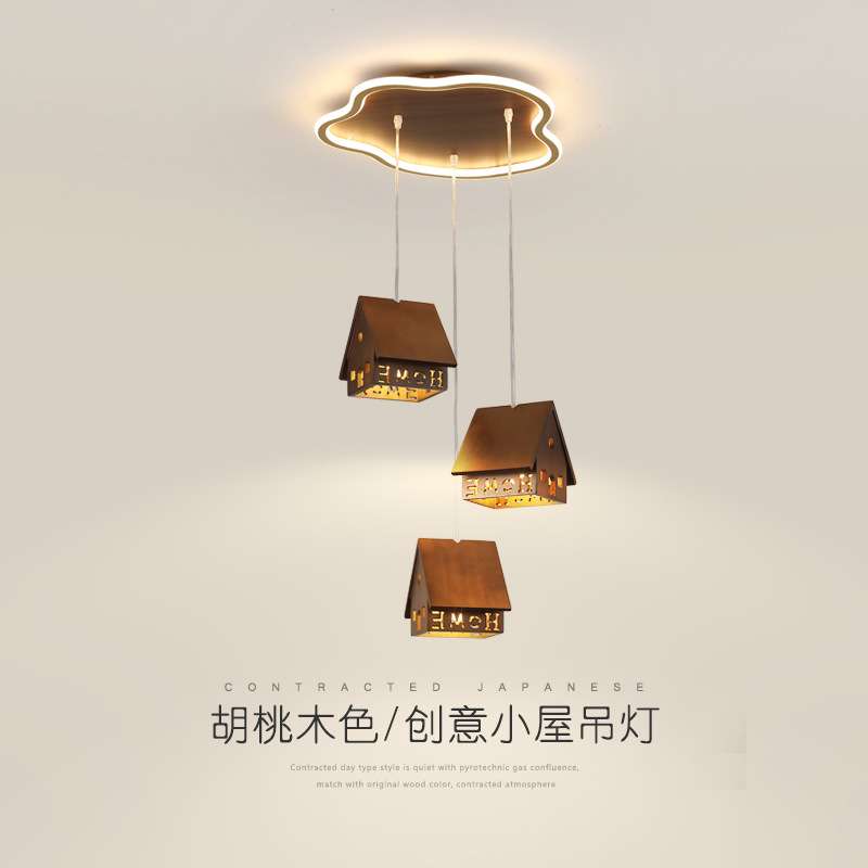 北欧原木风LED餐吊灯现代简约吧台餐厅吊灯创意日式实木灯具温馨