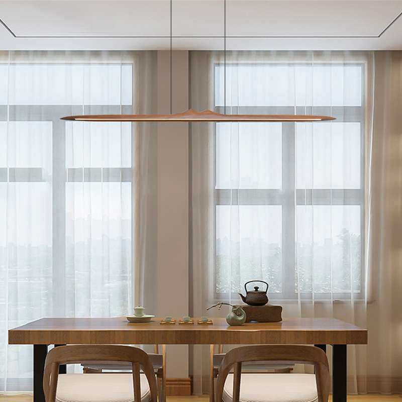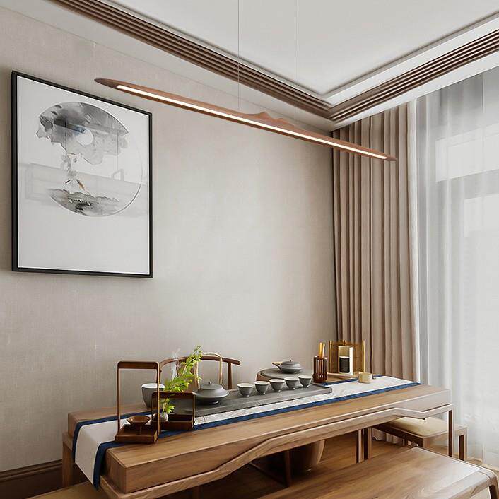 创意黑胡桃实木led餐吊灯吧台办公新中式简约一字长条茶室禅意灯