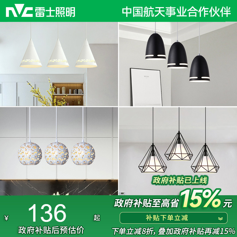 雷士照明三头餐厅灯简约现代轻奢个性创意客厅灯具北欧LED餐吊灯