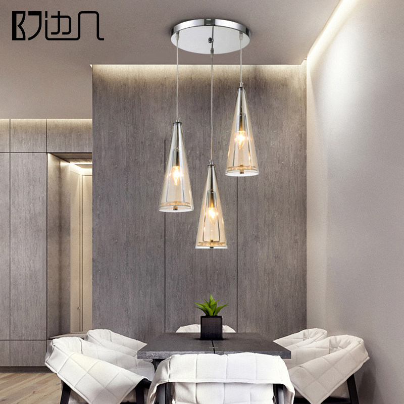 玻璃餐厅吊灯三头创意个性工业风吧台餐厅灯简约现代LED餐吊灯具