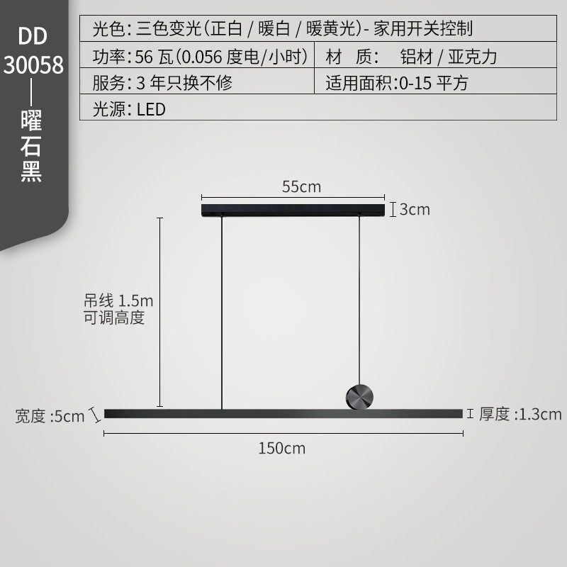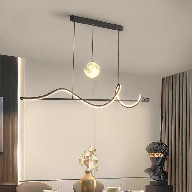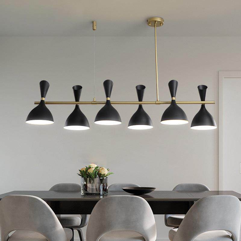 北欧餐厅吊灯极简办公室长条led餐吊灯黑色吧台餐桌铁艺一字吊灯