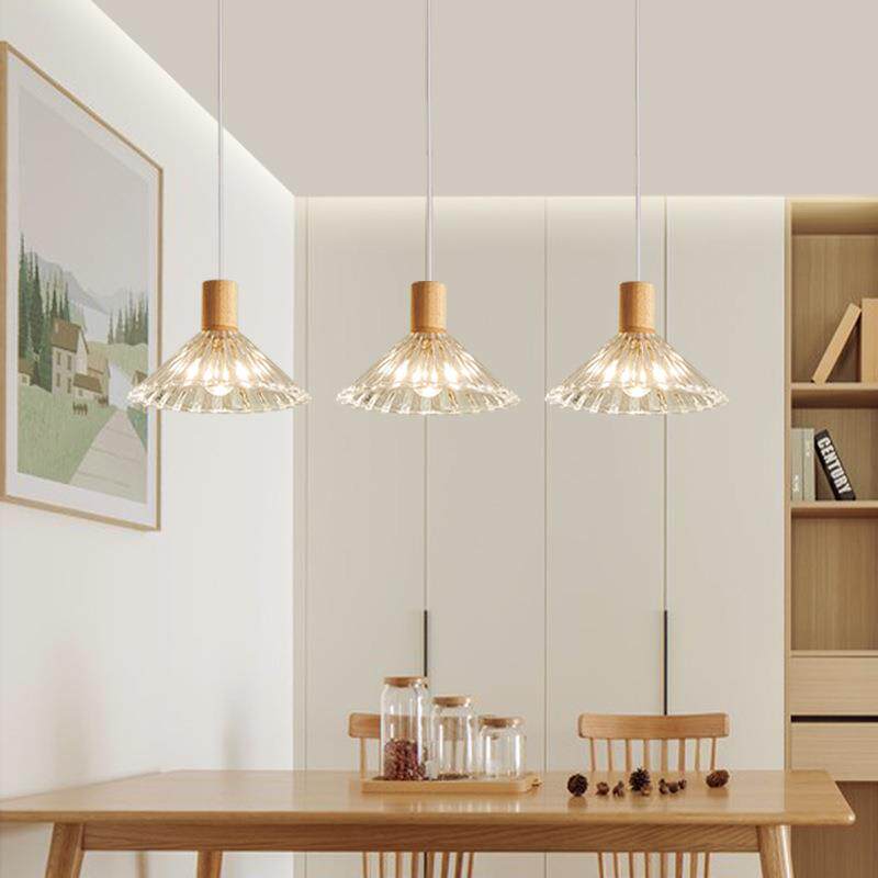 北欧简约三头原木小吊灯中古风日式侘寂风LED餐吊灯简约长线吊灯