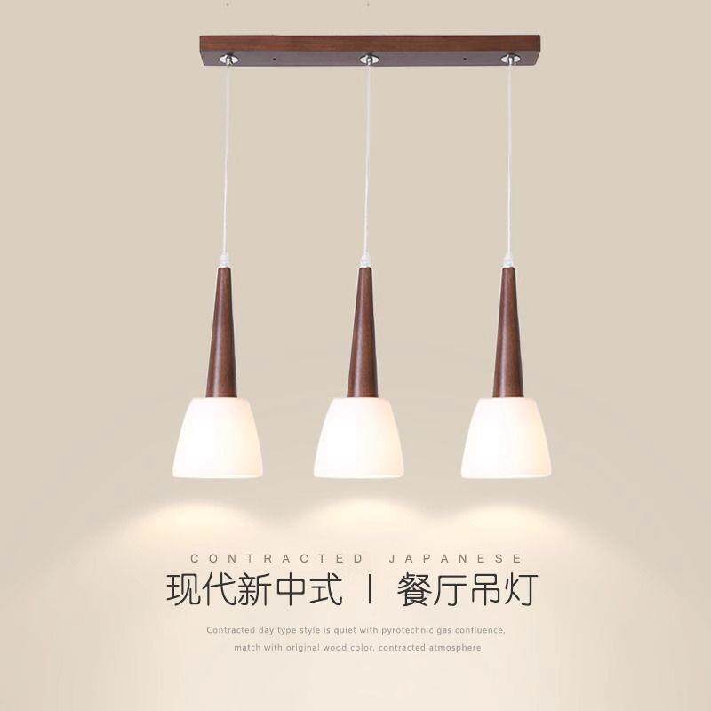 新中式LED餐吊灯三头单头创意胡桃木色餐厅灯具现代简约中国风灯