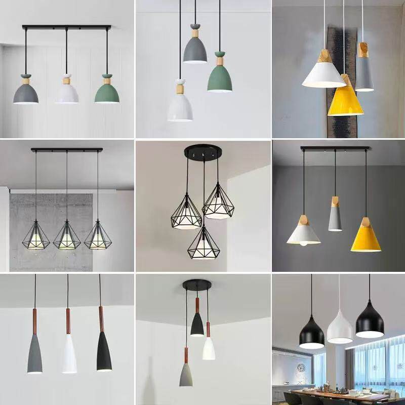上门包安装led餐吊灯具现代简约北欧马卡龙三头奶茶店吧台餐厅灯