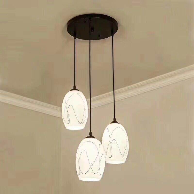 饭厅灯吊灯三头简约现代LED餐吊灯饭厅吧台灯罩鱼线玻璃3头灯具