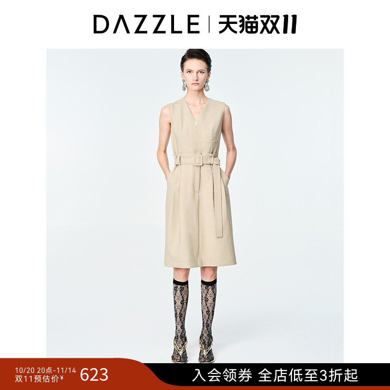 DAZZLE地素奥莱 春夏法式通勤气质V领直筒无袖背心连衣裙女