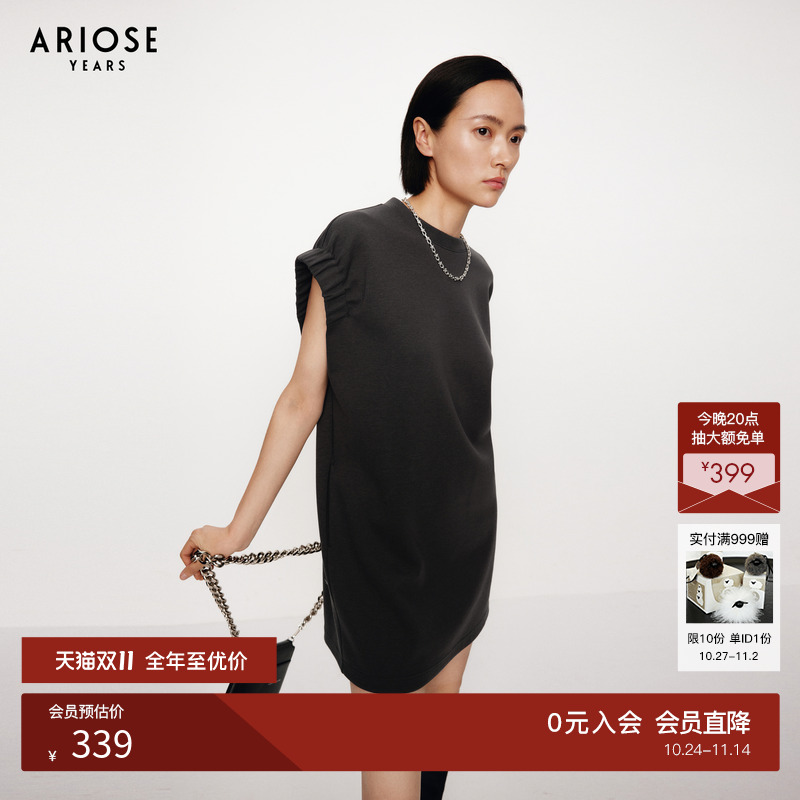 艾诺丝雅诗 气质通勤无袖直筒连衣裙女休闲松弛感裙子秋30719683
