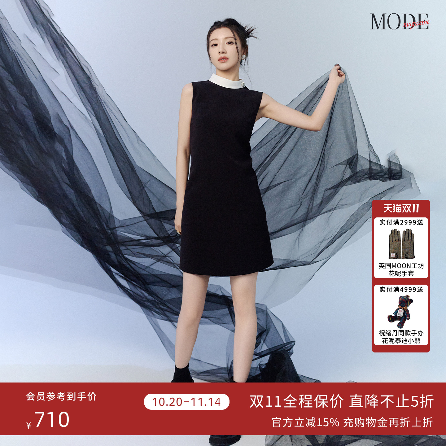 【MOCO奥莱】春秋100%羊毛捏褶修身收腰无袖直筒连衣裙摩安珂