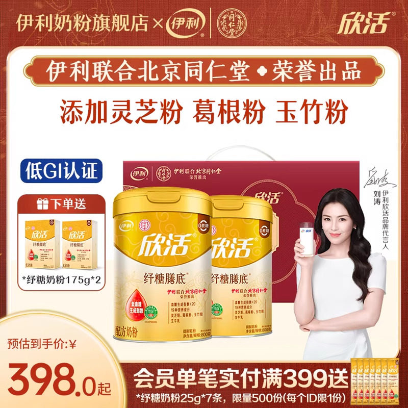 伊利奶粉旗舰店欣活纾糖膳底中老年奶粉高钙低GI营养奶粉800g*2