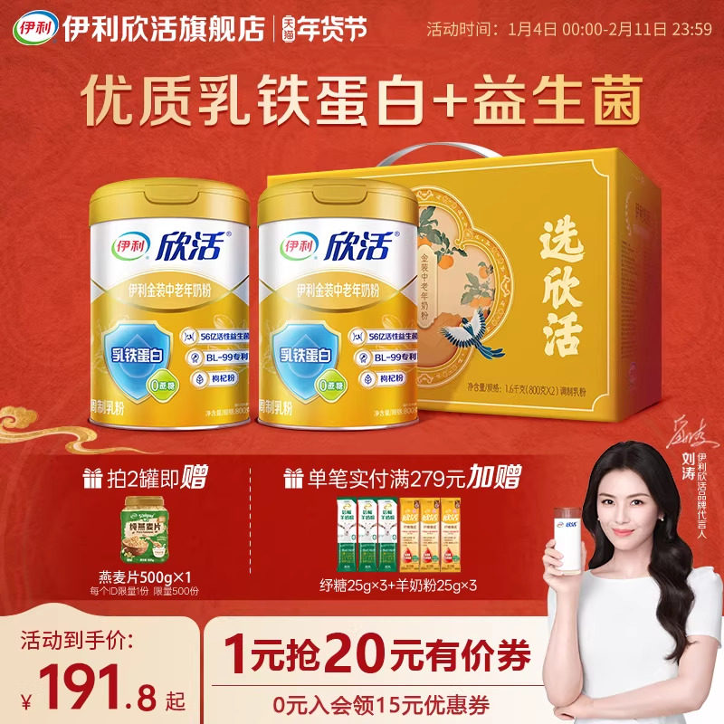 伊利欣活中老年奶粉高钙营养品成人奶粉送礼老年人正品官方旗舰店