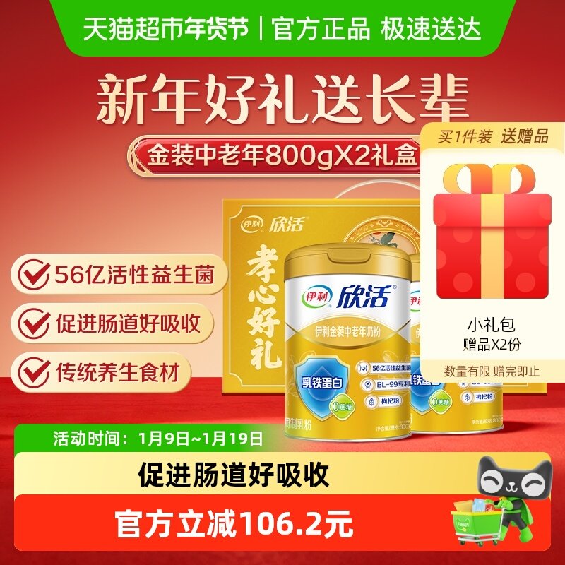 伊利欣活中老年奶粉高钙礼盒装正品官方旗舰店成人高蛋白营养牛奶