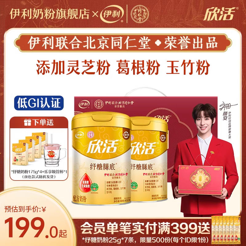 伊利同仁堂联名纾糖膳底中老年奶粉高钙低GI配方无蔗糖奶粉800g