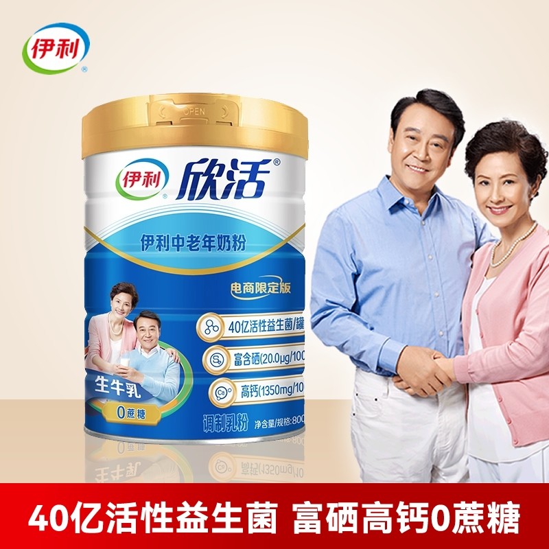 伊利欣活中老年奶粉高钙老人0蔗糖营养品牛益生菌富硒老年人脱脂