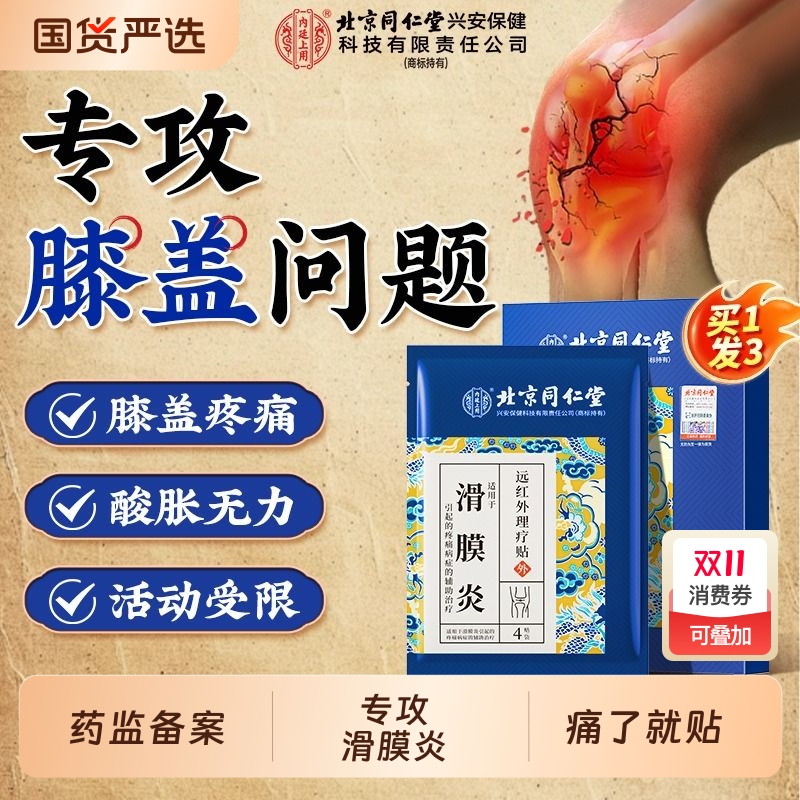 北京同仁堂滑膜炎半月板损伤专用贴膏关节膝盖疼痛修复穴位理疗贴