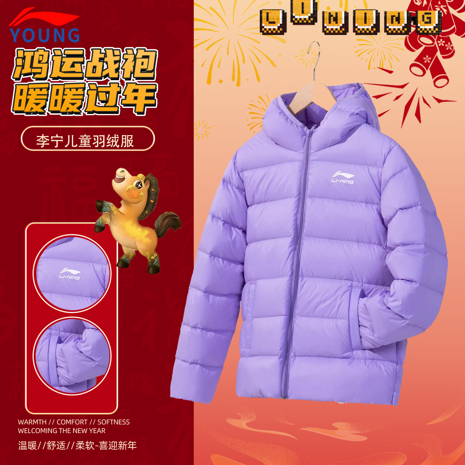 李宁儿童男女童羽绒服官方旗舰正品宽松休闲舒适连帽保暖运动外套