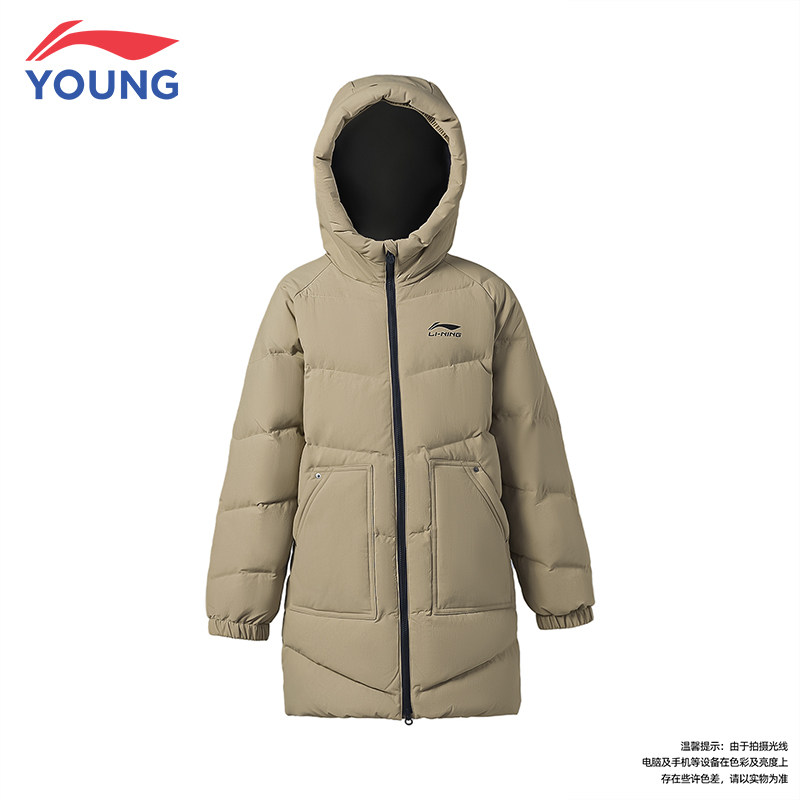 李宁男女童长羽绒服2025冬季新款青少年连帽鸭绒保暖外套AYMV512