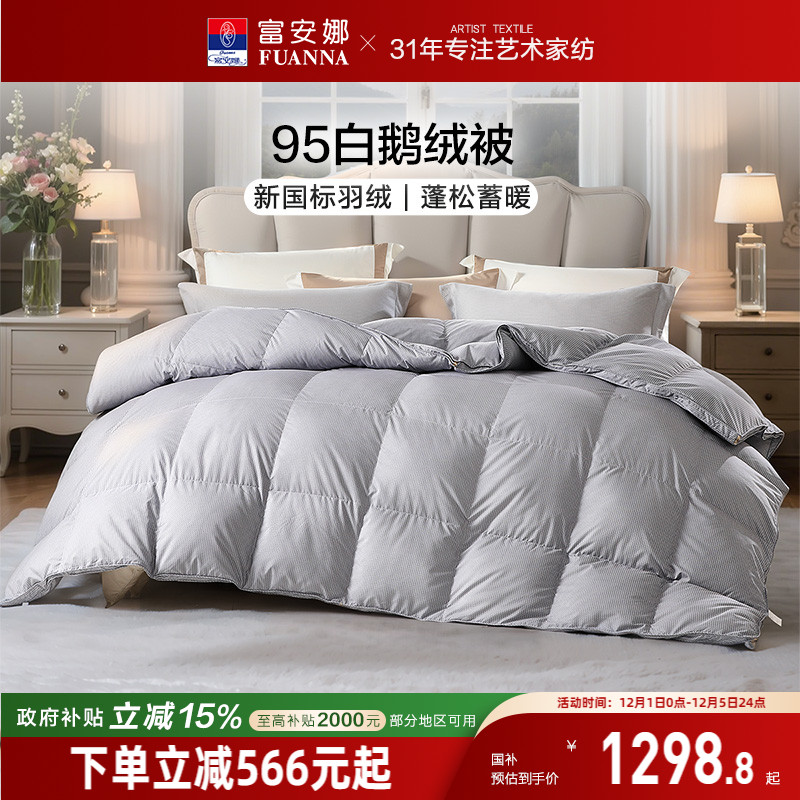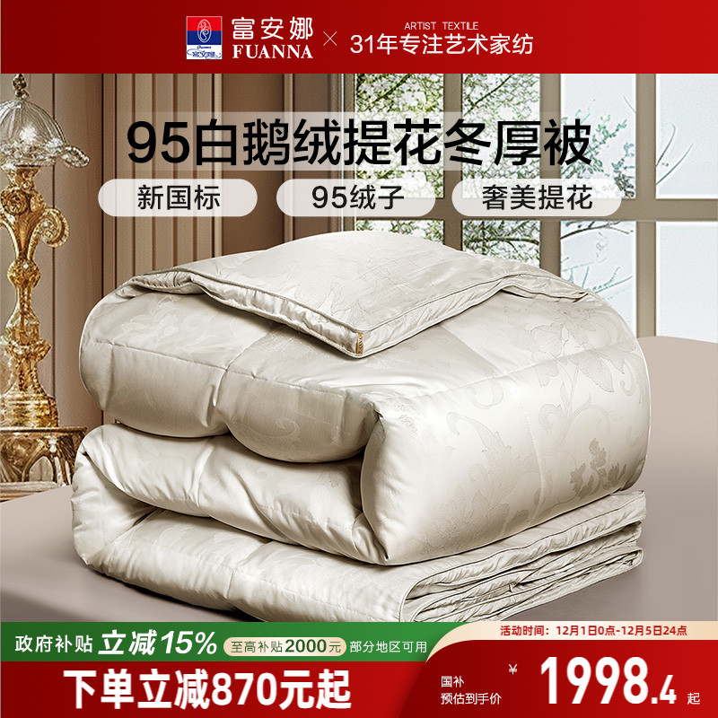 富安娜羽绒被冬厚被乌克兰进口95白鹅绒被子冬季保暖纯棉加厚被芯