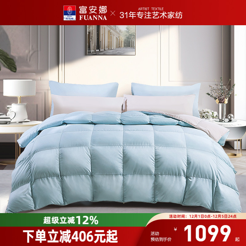 富安娜羽绒被冬被进口鸭绒被学生宿舍被子结婚白鸭绒羽绒冬被被芯