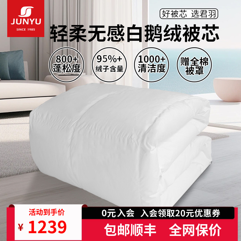 【赠被罩】君羽羽绒被冬被加厚800蓬白鹅绒被芯双单人被DX242212