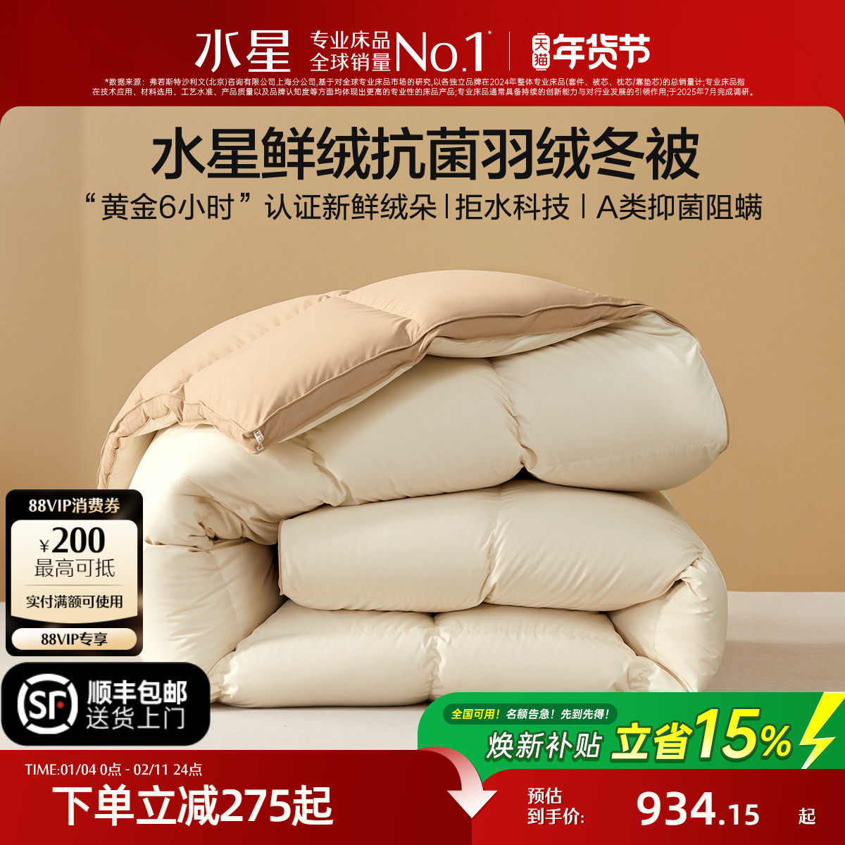 水星家纺羽绒被冬被抑菌阻螨A类加厚锁温保暖四季被高端礼盒年货