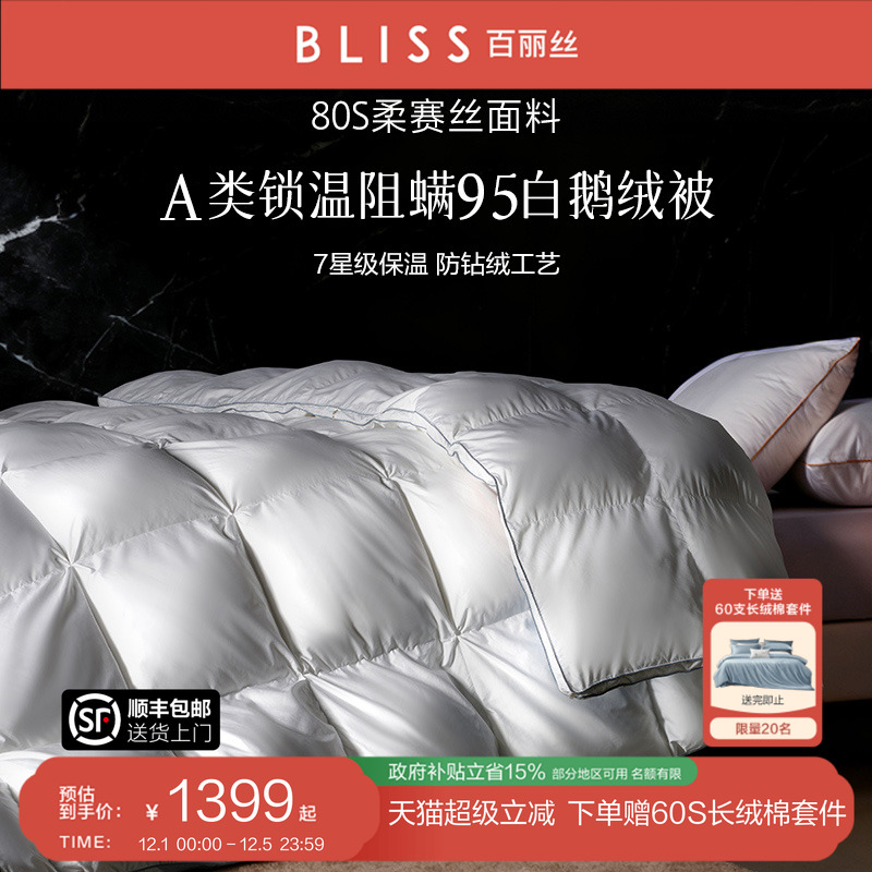 百丽丝家纺羽绒被冬被鹅绒被95白鹅绒被子羽绒被官方旗舰店正品