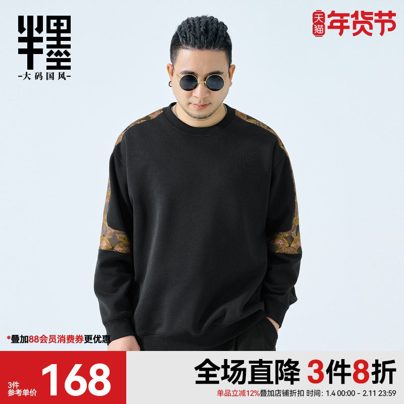半墨大码男装加绒卫衣男2025冬季新款宽松加肥加大中国风绣花外套