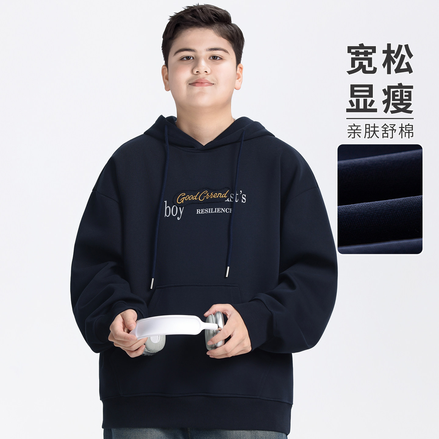 胖童装男童连帽春装卫衣外穿加肥加大2026新款中大童外套初中学生