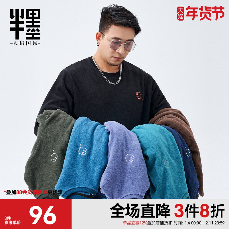 半墨大码男装加肥加大外套宽松打底休闲胖子圆领摇粒绒卫衣男加厚