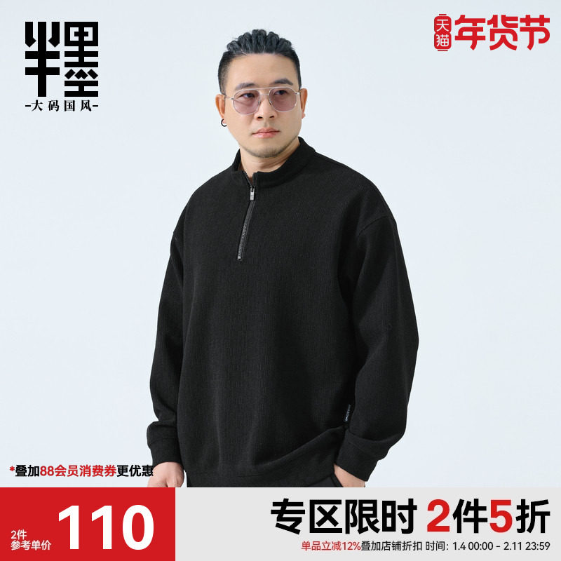 半墨大码男装半拉链卫衣男士秋季新款宽松加肥加大胖子长袖外套潮