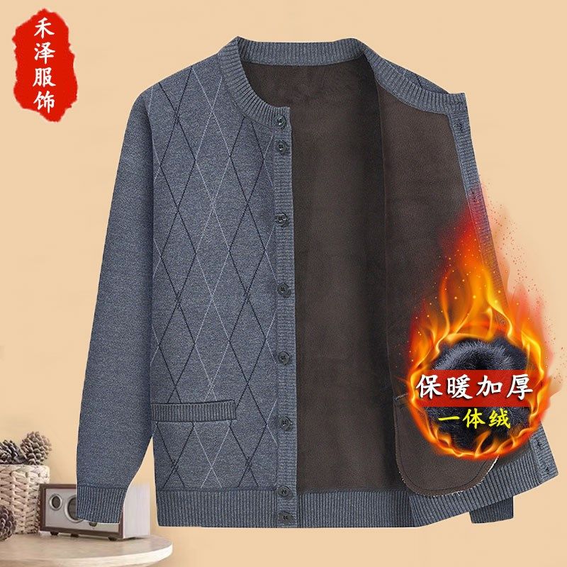 加绒加厚毛衣开衫中老年男装爸爸父亲爷爷秋冬长袖外套保暖针织衫