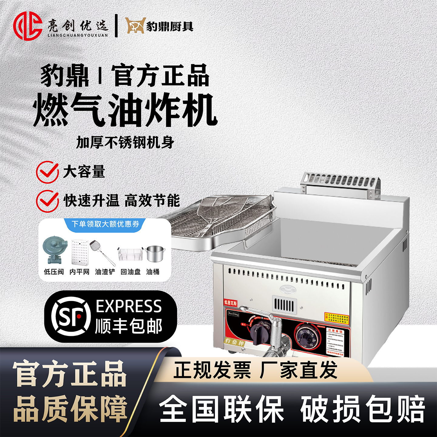 豹鼎燃气油炸机商用炸鸡薯条油炸锅燃气自动控温台式摆摊煤气炸锅