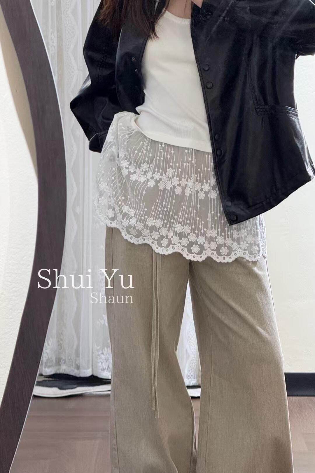 早秋白色蕾丝屁帘女新款系带短裙半身裙下摆打底洋气小短裙透视裙