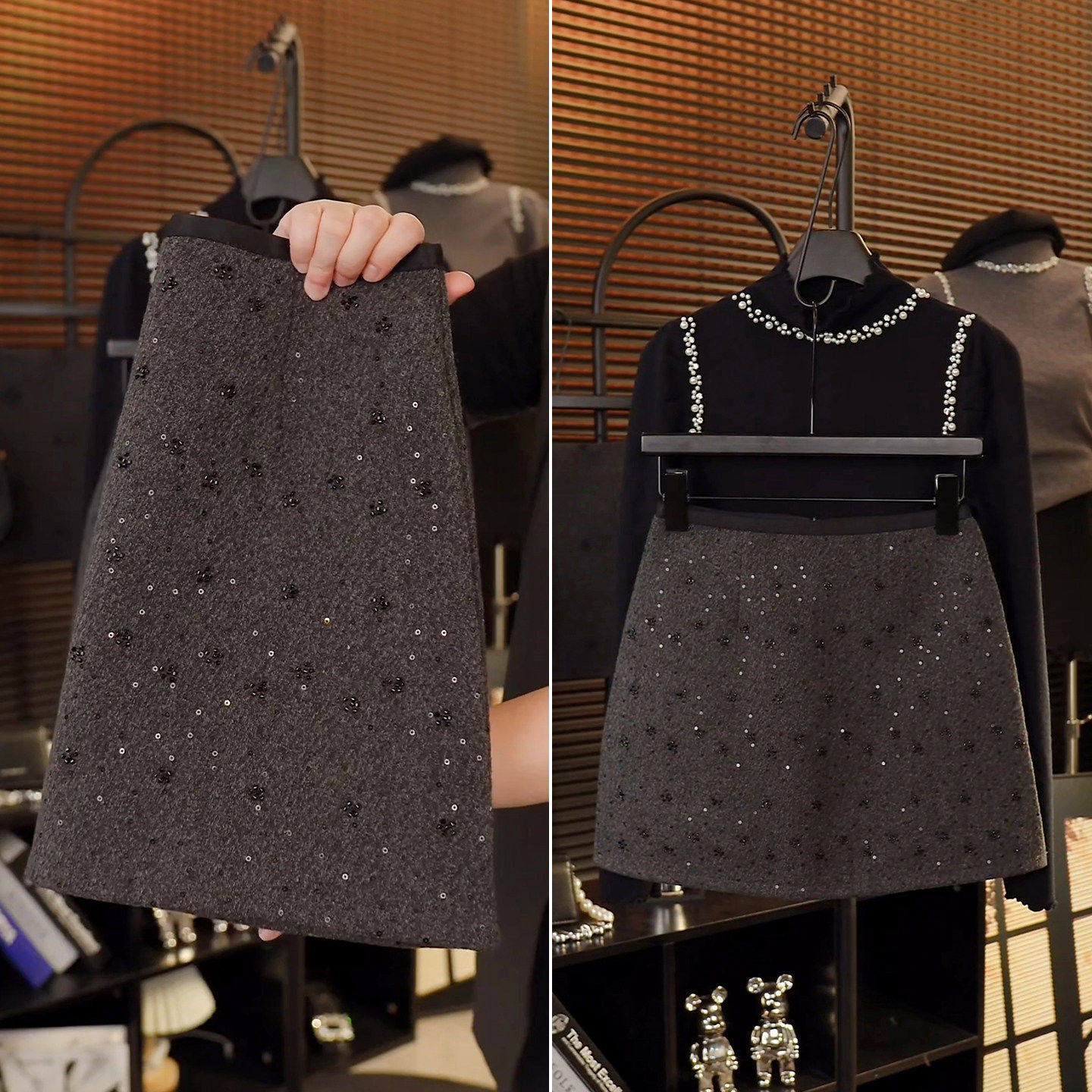 毛呢亮片短裙半身裙女秋冬2025新款高腰显瘦小个子时髦A字包臀裙