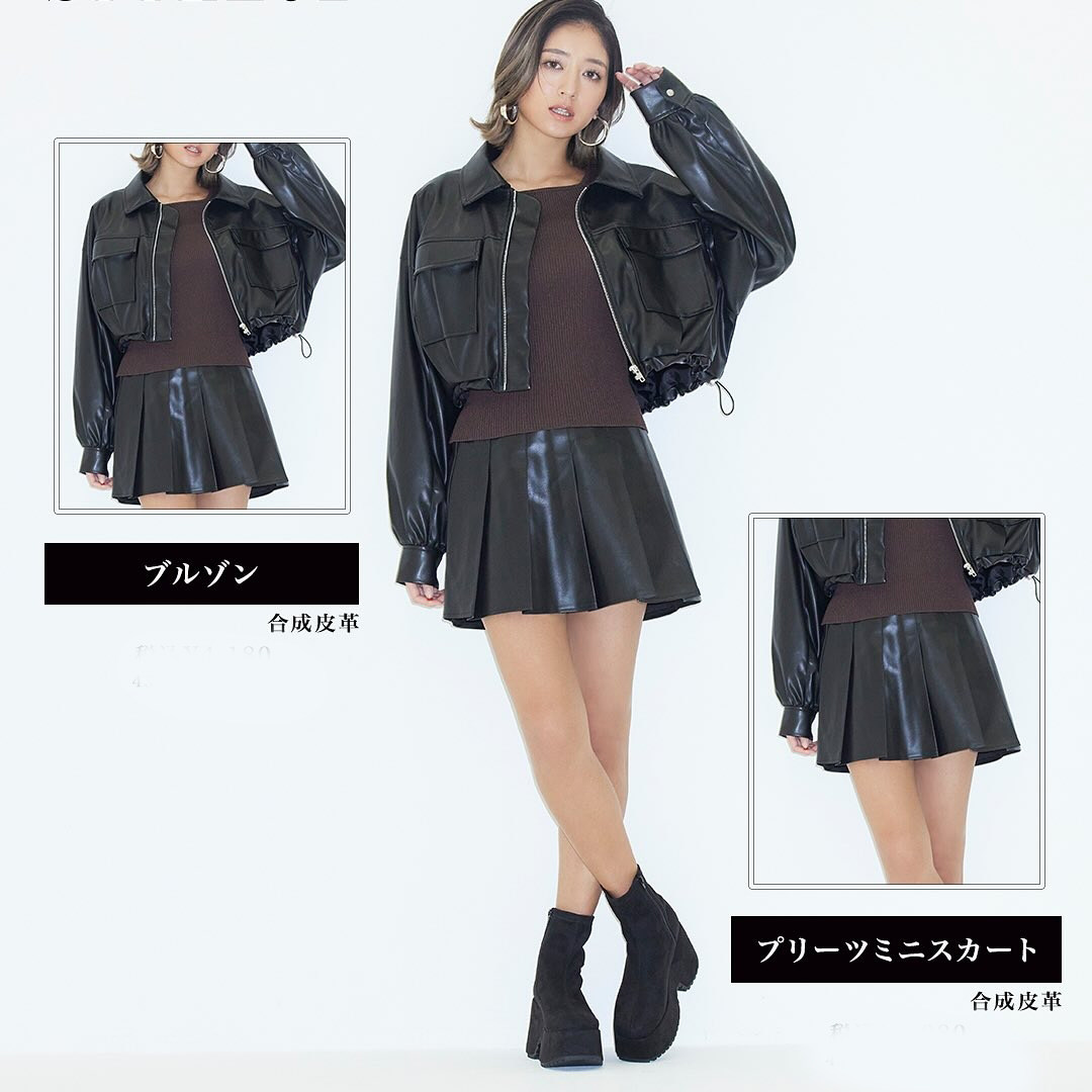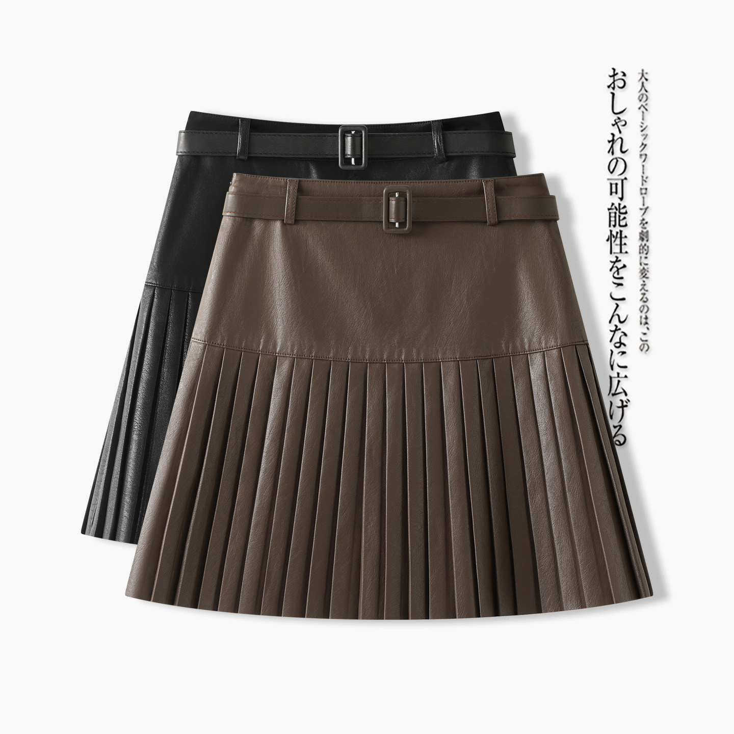 - pu百褶裙 半身裙