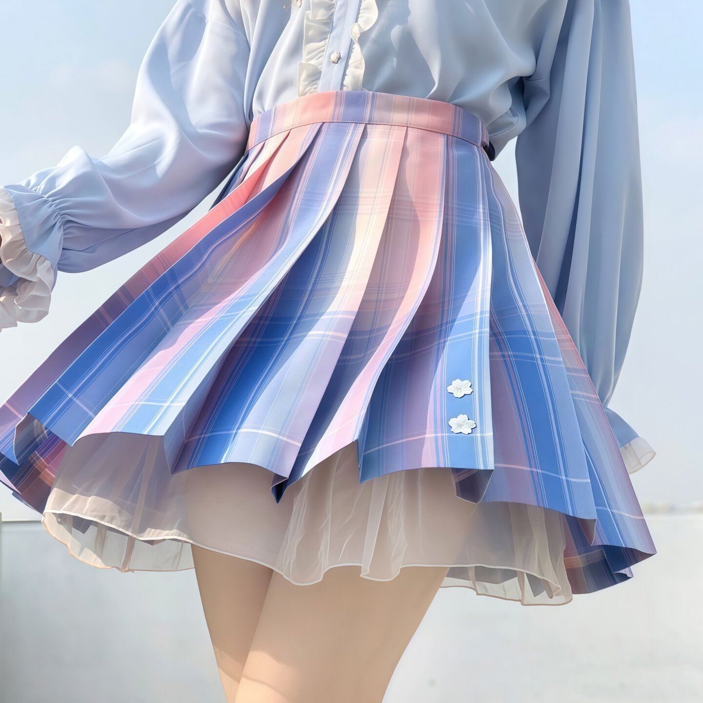 樱空少女原创jk格子裙JK制服蓝粉色裙子学院风百褶裙女短裙半身裙