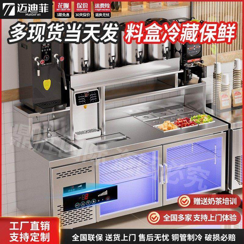 奶茶店设备全套商用冷藏水吧台操作台小料保鲜沙拉工作台源头工厂