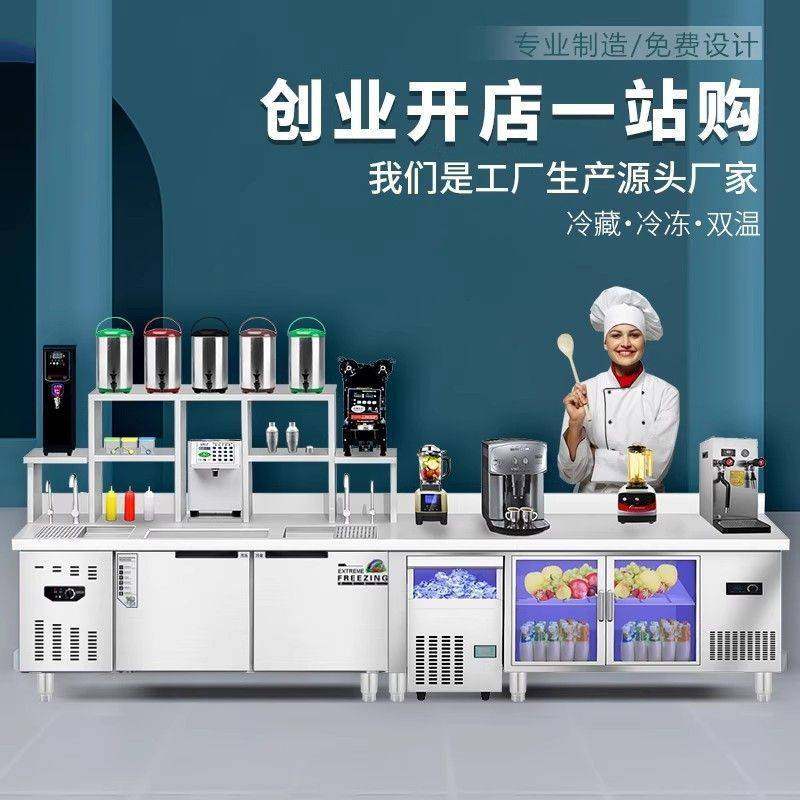一站式定制水吧台商用不锈钢冷冻柜奶茶设备操作台工作台冰柜全套