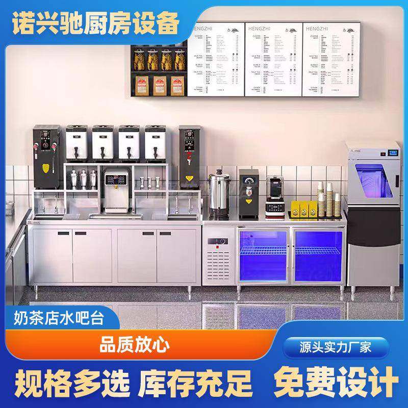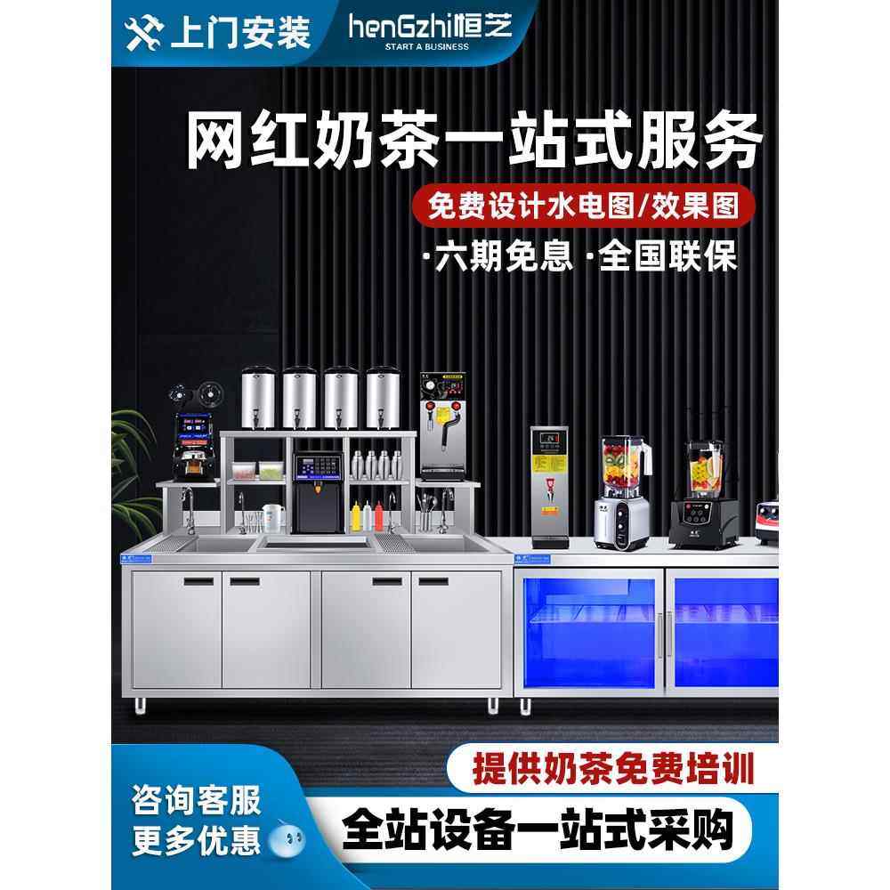 恒芝奶茶店设备全套水吧台操作台商用工作台冷藏冰箱不锈钢奶茶机