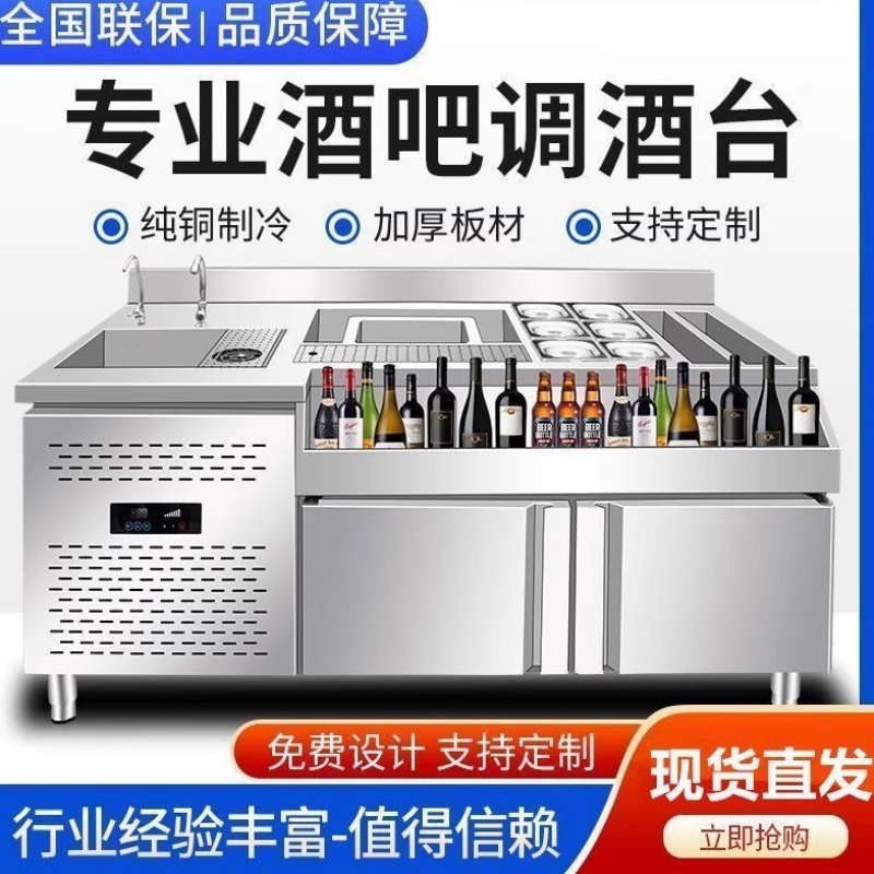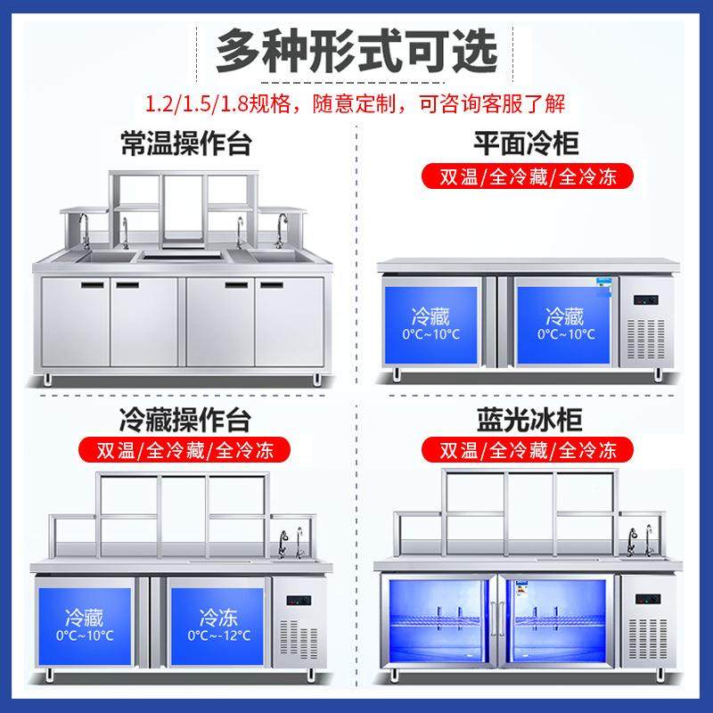 水吧台商用奶茶店设备全套一体柜冷藏冷冻不锈钢工作台咖啡操作台