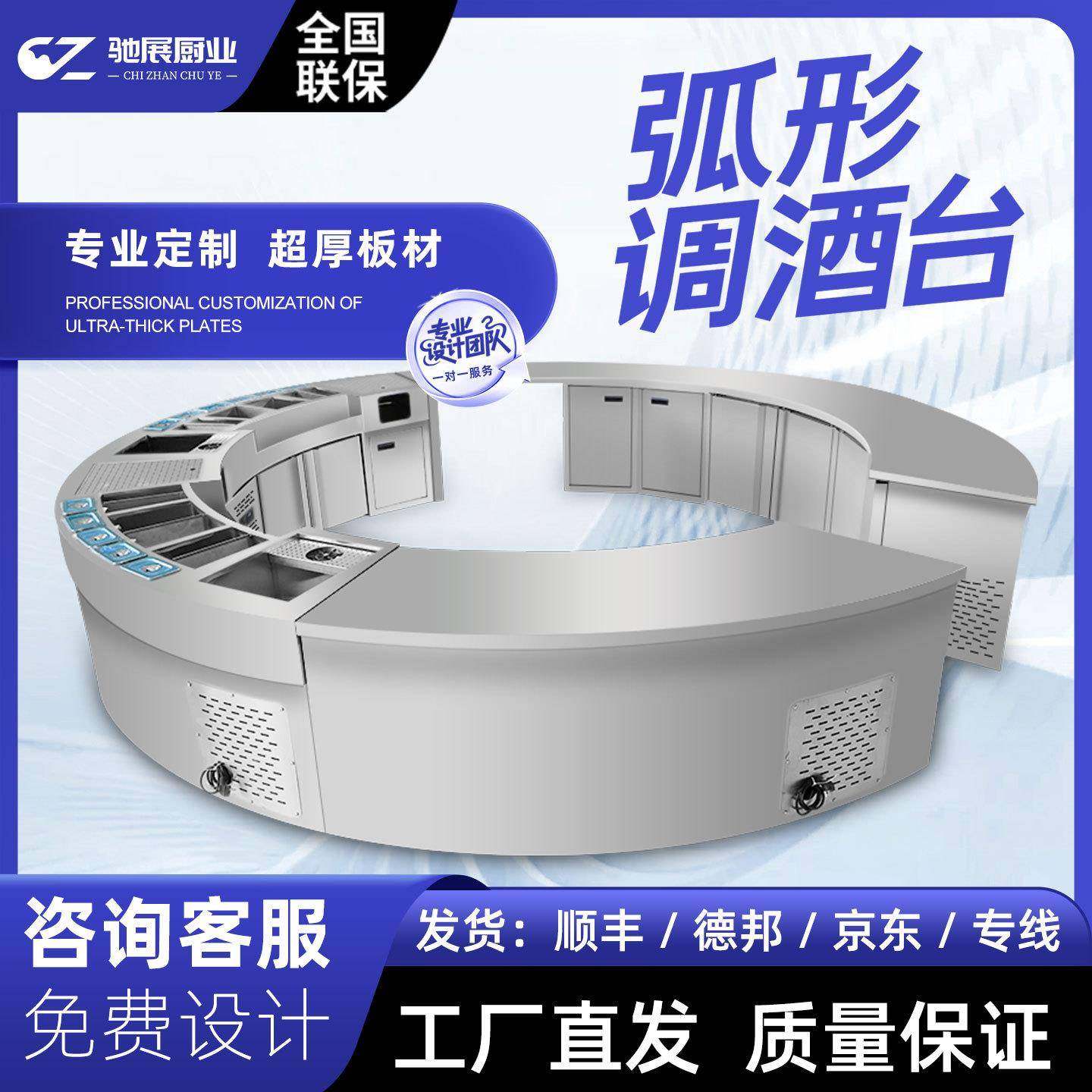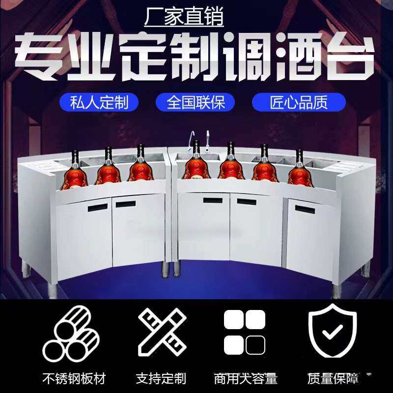 酒吧不锈钢弧形调酒台水吧台操作台作台KTV鸡尾酒设计冷藏展示柜