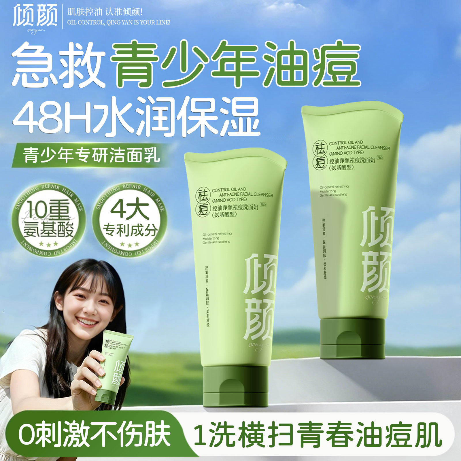 倾颜硫磺青少年洗面奶控油祛痘深层清洁毛孔黑头男女学生洁面乳皂