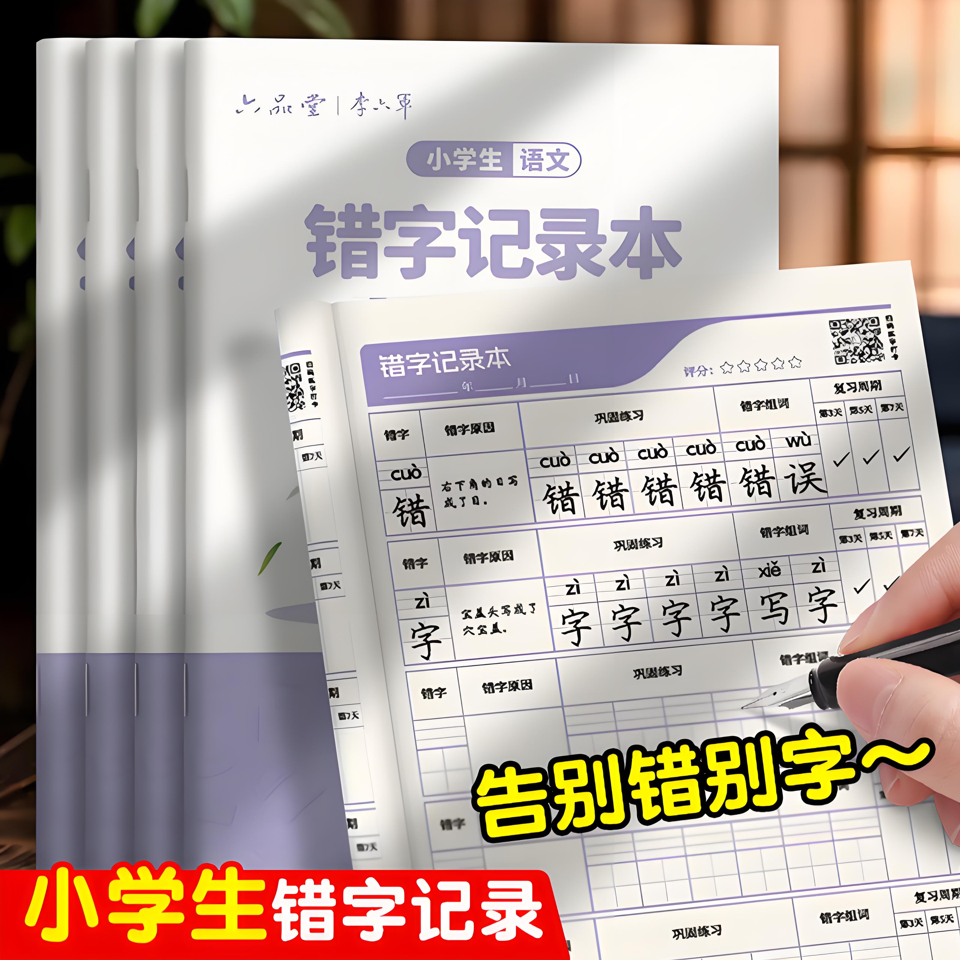 小学生专用错字记录本一二三年级语文艾宾浩斯积累本错别字整理错题本听写默写生字记录打卡分析错词易错字本